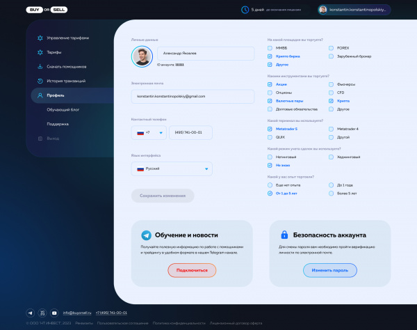 Управление всеми помощниками идет через личный кабинет