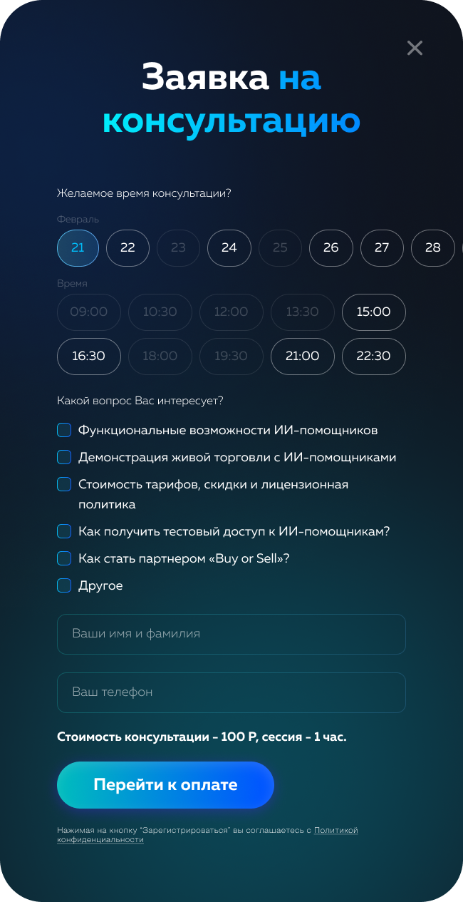 Продукт сложны и эксклюзивный. Упор сделан на консультационные формы захвата