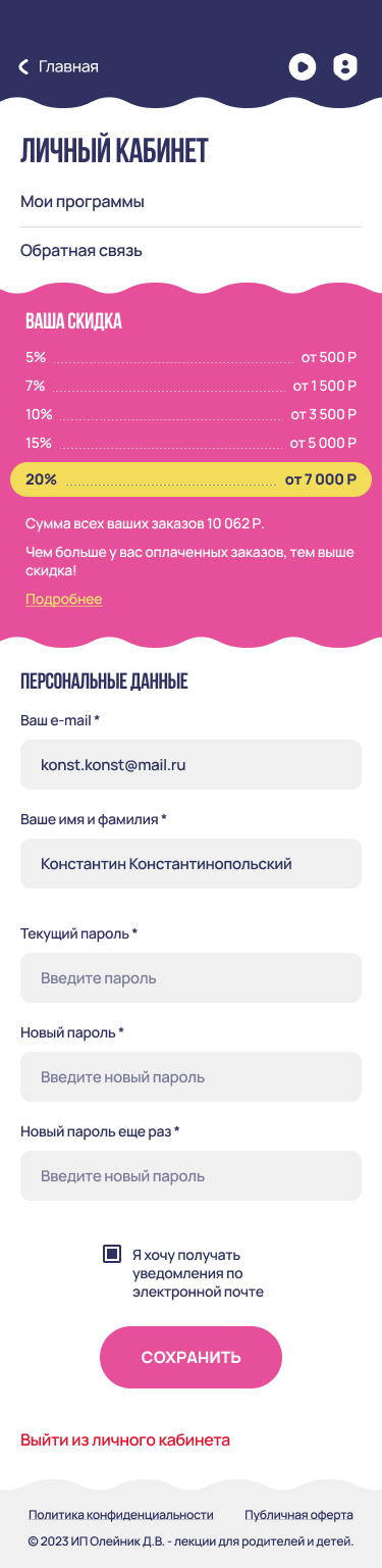 В личном кабинете у каждого пользователя есть накопительная скидка